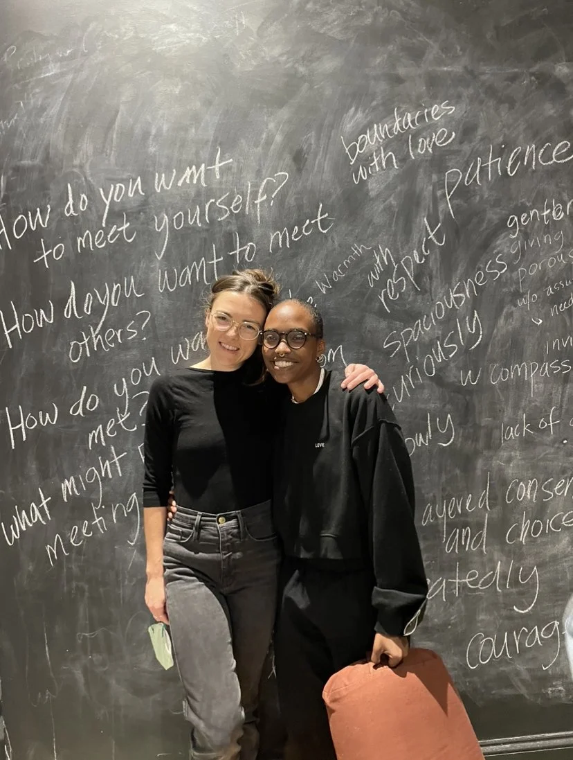 Through taking an embodied or somatic approach to exploring the conditions of meeting, our goal is to develop a practice that ripples into our relationships over time.
